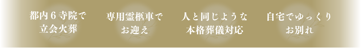 ご家族がそばで優しく見守っていられるよう、パウズメモリー公認「ペット葬儀プランナー」が火葬や葬儀の準備や手配、供養のご案内を行います。どうぞ安心してお任せください。